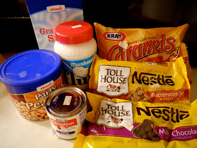 The nougat layer is made from butter, condensed milk, sugar, and fluff. I may have added too much fluff.