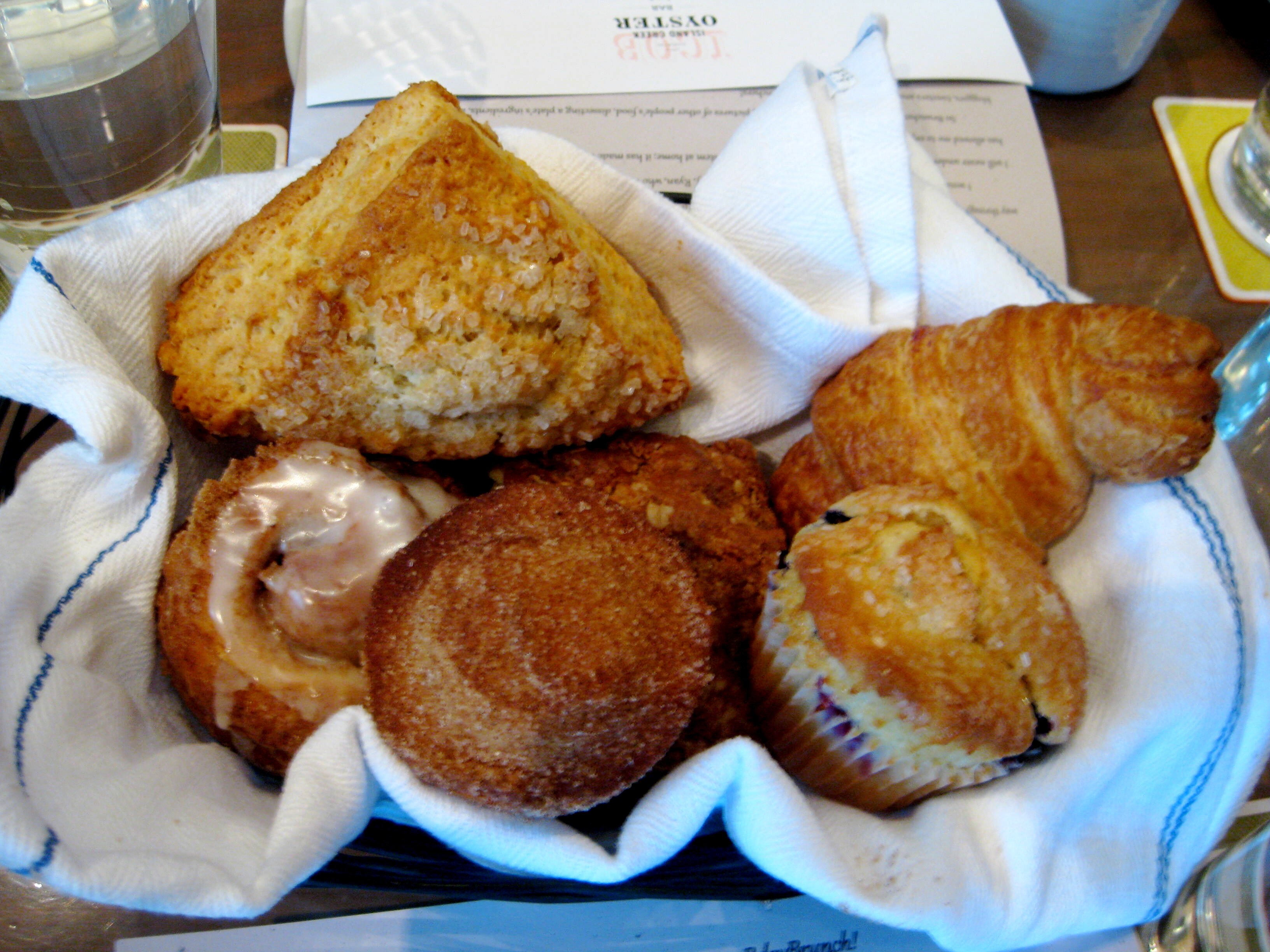 The Brunchers occupied four tables and each table received a few baskets of pastries to share.