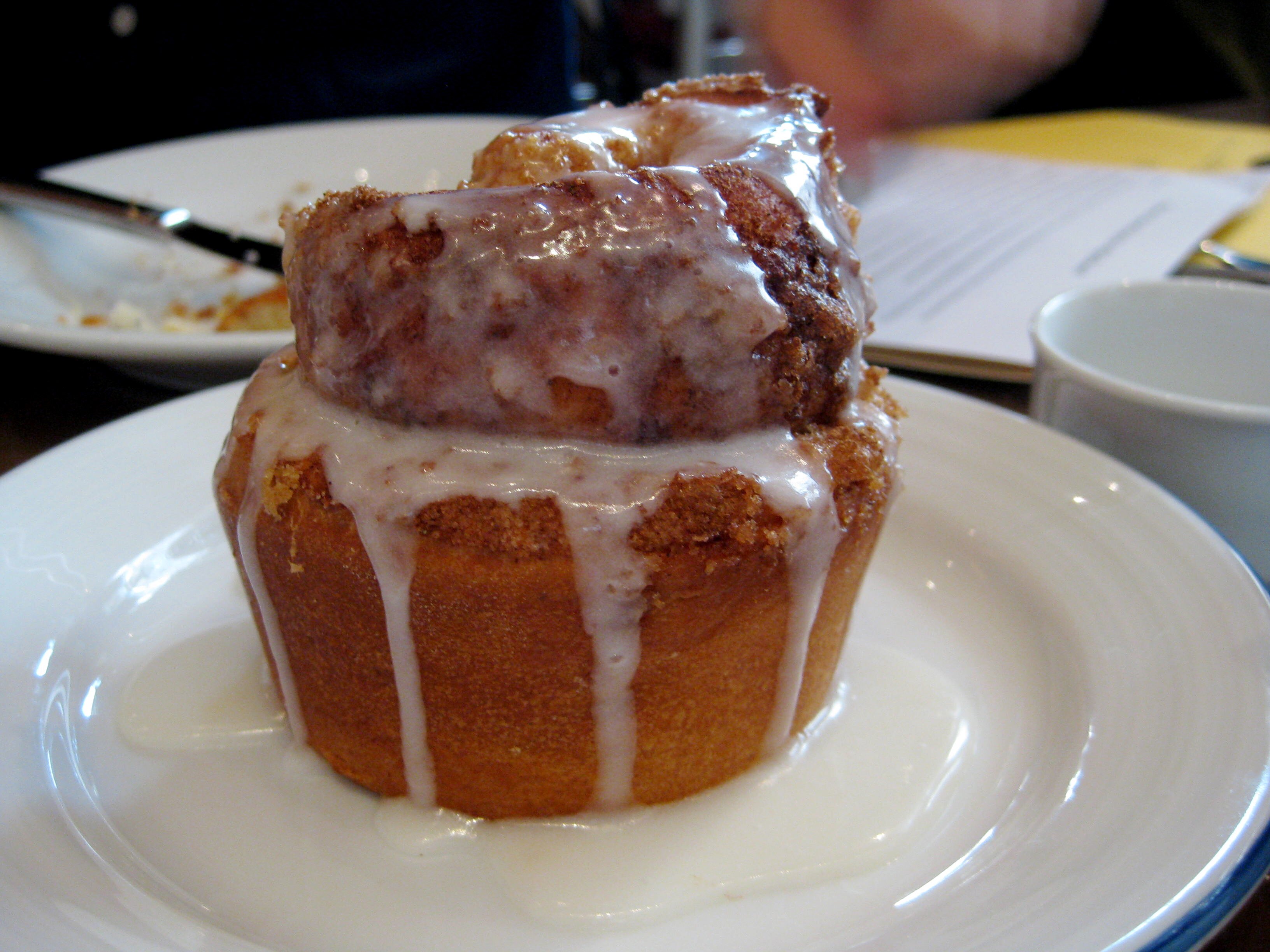 We cut each pastry to share so we could each taste a little of everything. The donut muffin was my favorite as it was the most unique. The muffins, scones, croissant and cinammon roll were served warm and tasted freshly baked. The cinnamon roll was so good that Elizabeth ordered another one for sharing.